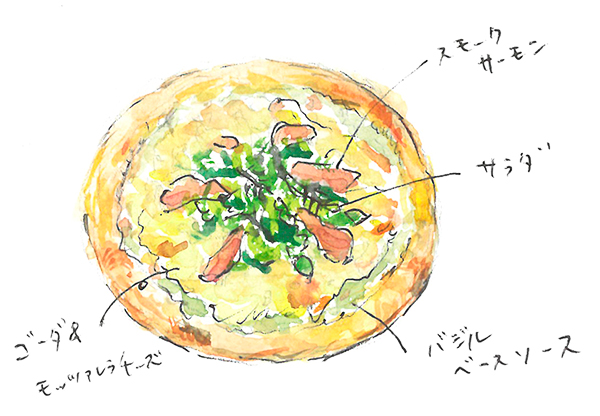 スモークサーモンのサラダピザ