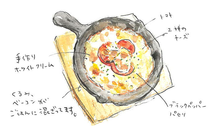 ジューシーな焼きトマトとブラックペッパーの香る手作りホワイトソースのドリア。